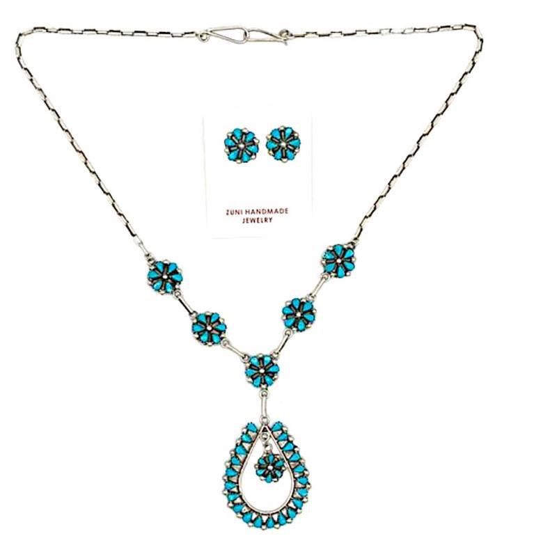 Zuni Turquoise Cluster Necklace Earrings Set Sterling Silver Sleeping Beauty