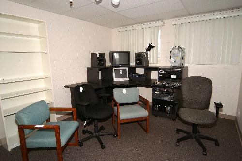 Pro Tools editing workstation - incl. Pro Tools editing rig (PowerMac G4 with Aurora fuse and Mix core cards, Digidesign 882/20 channel I/O, 17" CRT monitor), Sony PVM-2030 monitor, KRK KROK speakers, Rane SM82 line mixer, Symetrix 420 20W amp, Horita RM50 black burst, JVC VCR BR-S525DXU, SCSI 7 bay (2 wide/2 narrow), workdesk with Furman PL-Plus Power Conditioner and patch bay, 5 chairs, bookcase - room 209