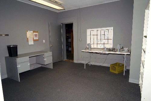 2 desks, bookcase, worktable, 6 chairs, 2 tables, whiteboards, shelves - room 131 and 131 Hall