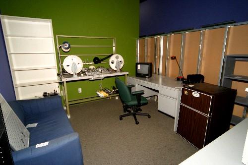2 desks, chair, 2 bookcases, shelves, sofa, refrigerator - room 163
