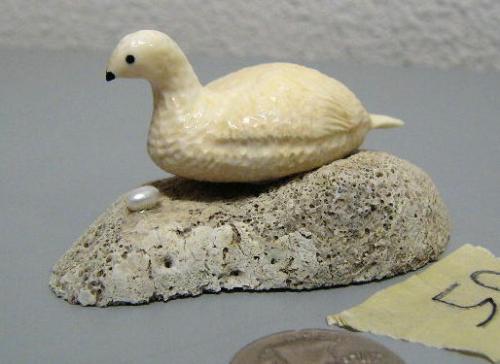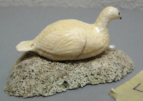 ca. 1960 old King Island piece- ivory ptarmigan with egg- 3"