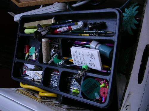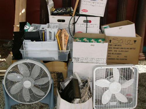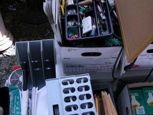 couple of fans and light bulbs and assorted office supplies and metal filing cabinet (16)