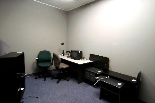 desk, 2 chairs, bookcases, 2 lamps - room 111