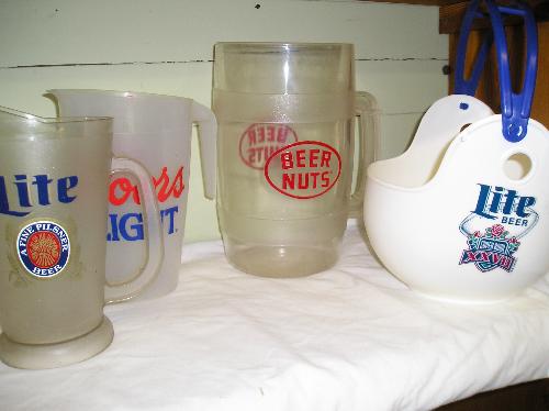 Plastic beer pitchers, Coors, Beer nuts, helmet