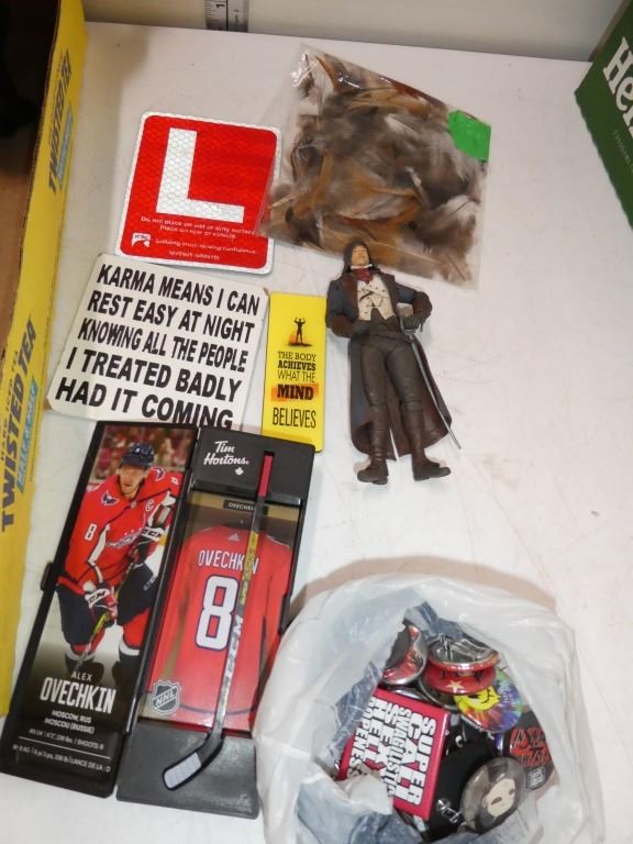 misc signs, dolls, Ovechkin, Halloween assortment