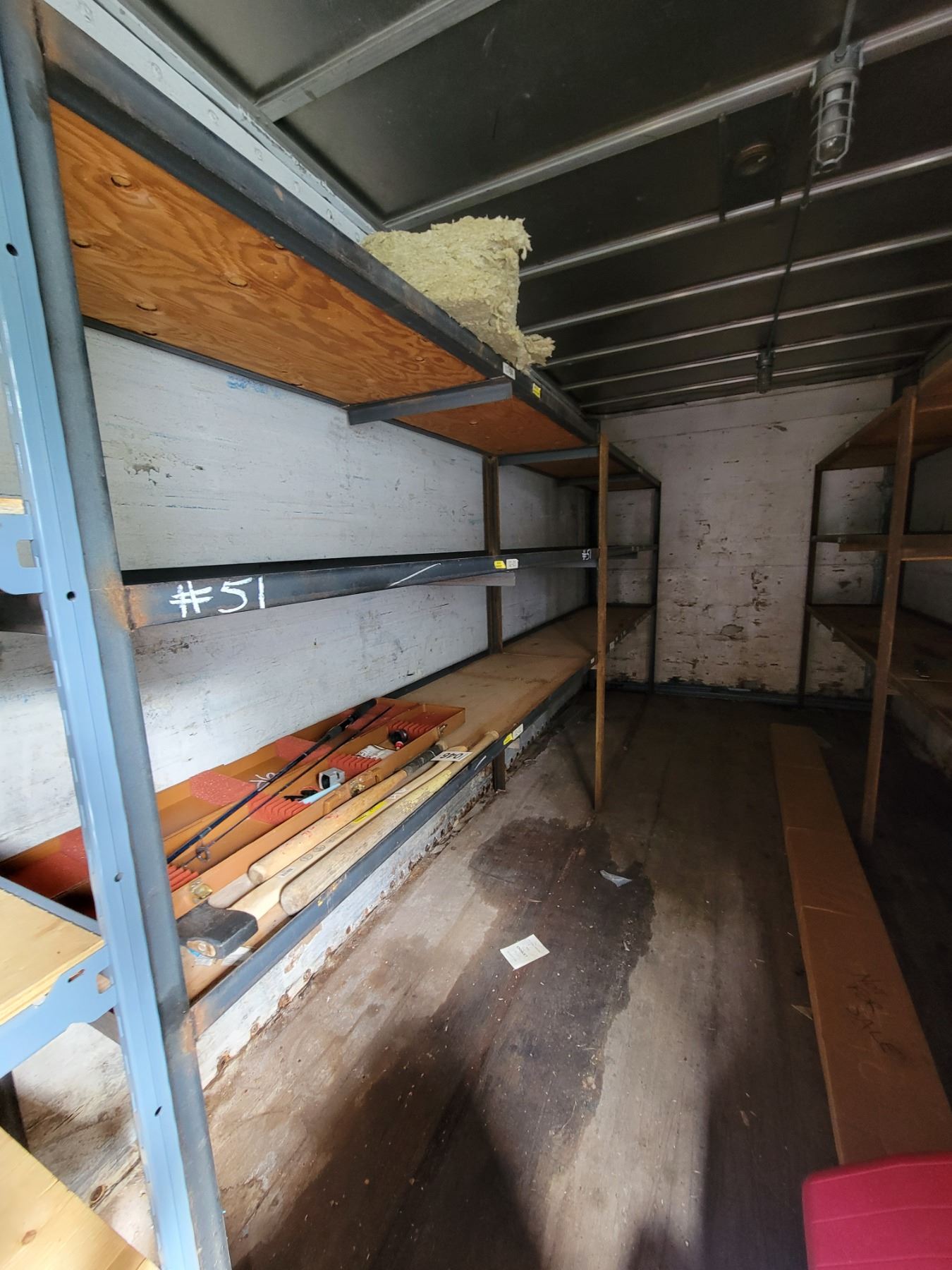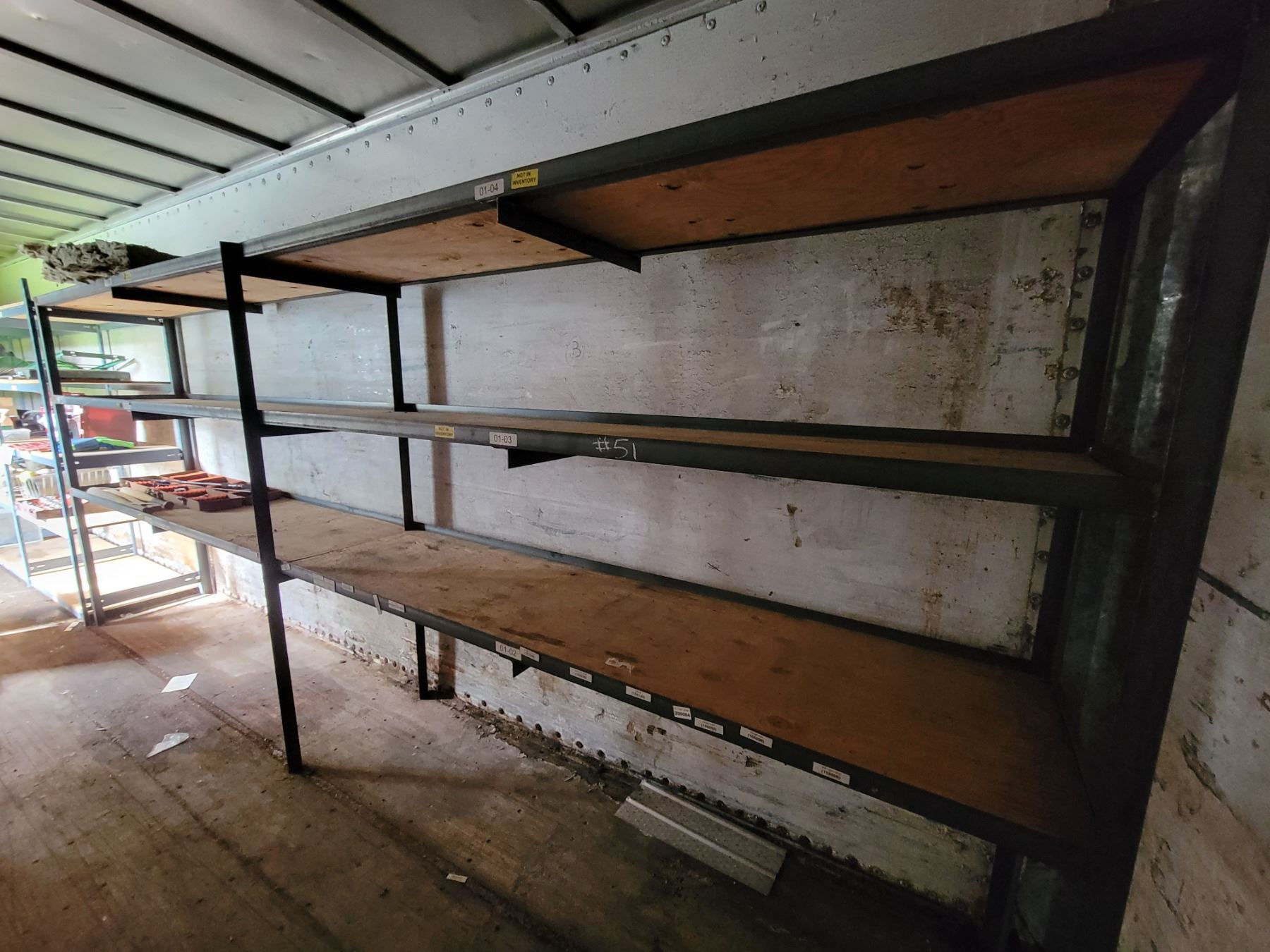 (so much each x2) 2- 194" x 7 ft, 4-row metal shelf c/w plywood (In Van-West Yard)