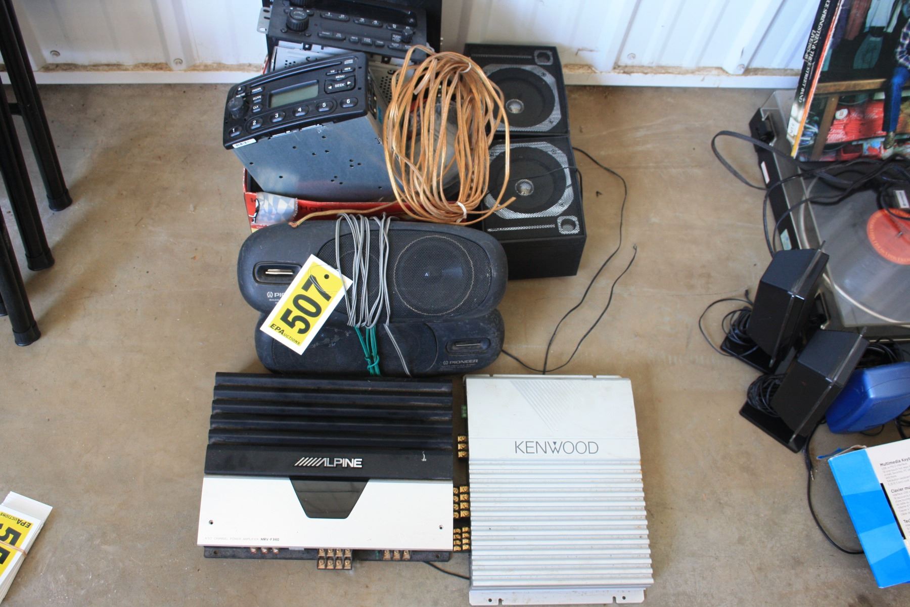 Kenwood amplifier, Alpine amplifier, 2 factory stereos , 4 speakers, and DVD player