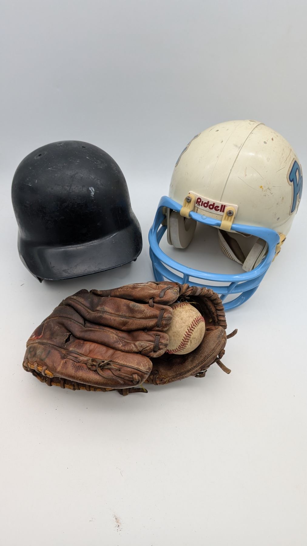 vintage Sports helmets and leather glove