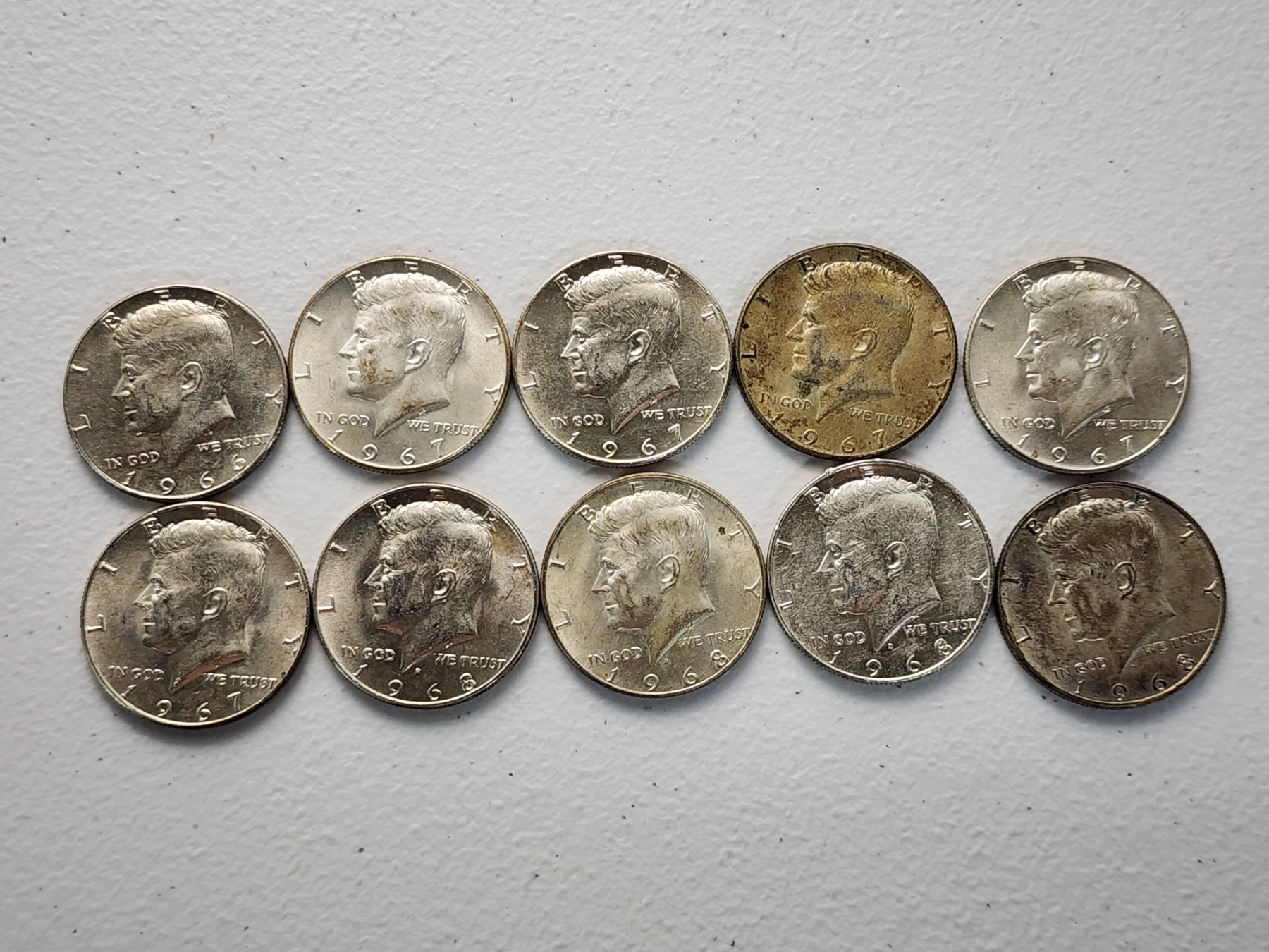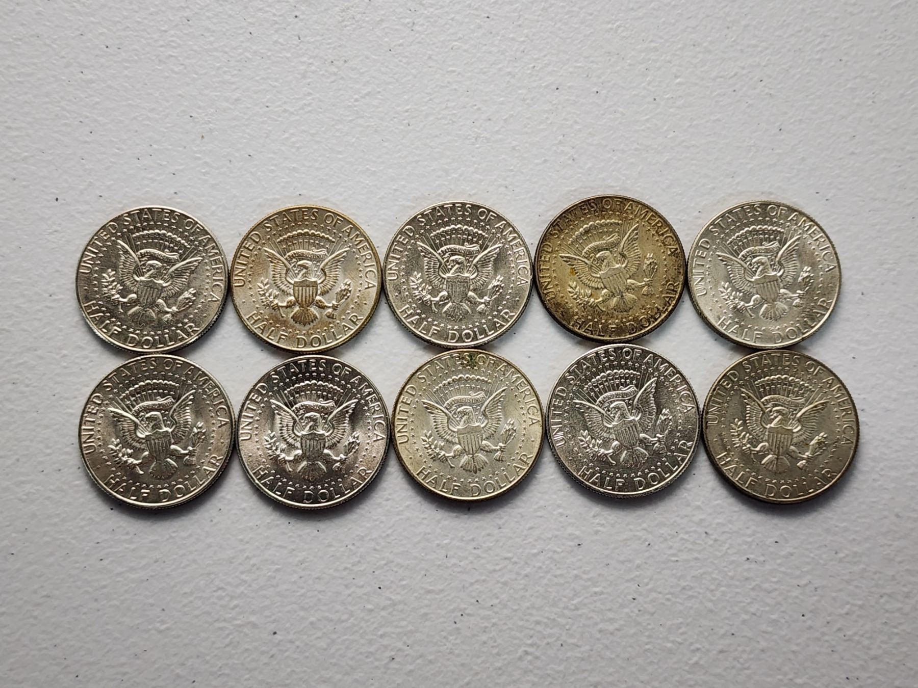 x10 Assorted Years 40% Silver Kennedy Half Dollars FV: $5.00