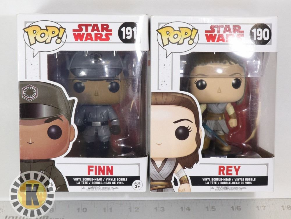 x2 POP STAR WARS REY AND FINN FIGURES, NEW